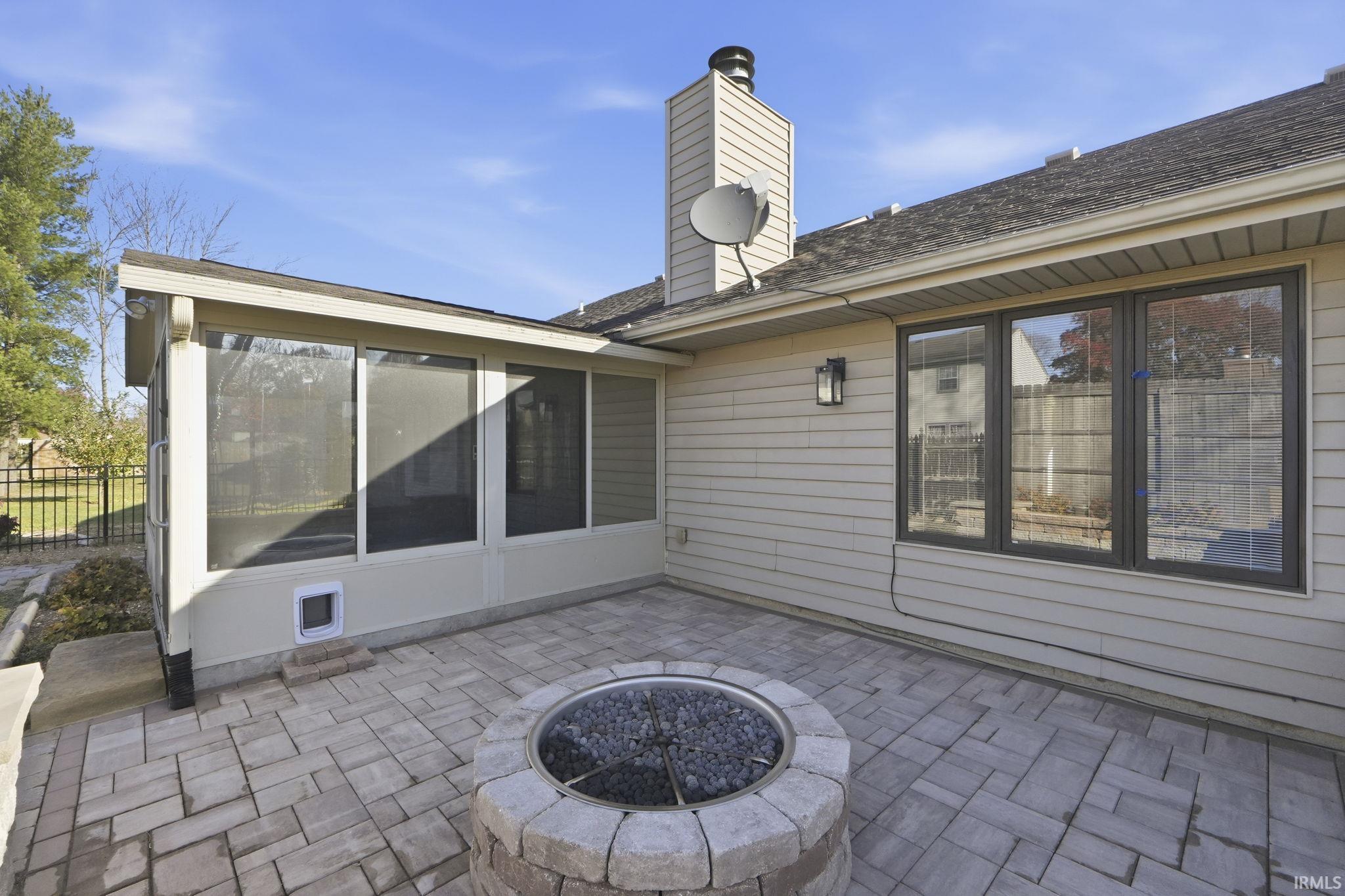 Discover the perfect blend of style and comfort in this beautifully updated 3-bedroom, 2-bathroom home, ideally situated on a quiet cul-de-sac. Renovated from top to bottom, it features full LVP flooring throughout, a functional layout, and generous living spaces. The remodeled kitchen is a true highlight, offering thick granite countertops, a granite composite sink, full tile backsplash, and stainless steel appliances—ideal for anyone who loves to cook. The expansive great room impresses with soaring cathedral ceilings and a striking full-wall brick fireplace. The primary suite includes a spacious walk-in closet and an updated full bath with tile flooring, a modern vanity, and contemporary fixtures. The additional bedrooms are well-sized with ample closet space, and the second full bath is equally well-appointed with tile floors and updated finishes. Enjoy year-round views of the backyard from the fully enclosed three-season room. Step outside to an outdoor oasis featuring exceptional hardscaping, a built-in gas fire pit, and beautifully landscaped grounds complete with permanent decorative curbing—no more edging required! Nestled at the end of a peaceful cul-de-sac, this home offers quiet surroundings while still placing you within walking distance of Georgetown Square, where shopping, dining, and entertainment abound. Washer, dryer, and storage shed are all included. This is the home you’ve been waiting for!