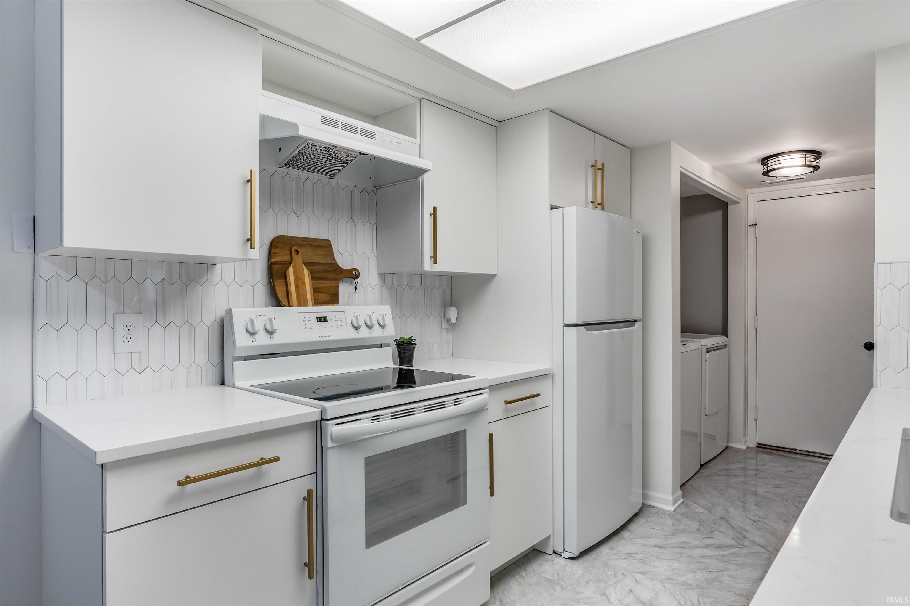 **Open House Sat. Dec 13th 1-3** Beautifully refreshed & move-in ready boasting a lofted ceiling, tons of updates including a gorgeous completely renovated kitchen, private patio & so much more! Tucked away in quiet & peaceful area at the back of Sawmill Woods on a cul de sac & tree lined lot, exterior is neat & tidy w/ detailed landscaping, attached 1 car garage (w/ storage cabinets & counter space for workshop) & inviting covered front porch. Although built in 1986, it has been impeccably maintained w/ regular maintenance & improvements including furnace & air cleaned/serviced twice yearly, new water heater in 2022, new tear-off roof 2024 & exterior power washing & dryer duct cleaning July 2025. Front door w/ sidelight opens to bright & welcoming atmosphere complemented by fresh paint & new flooring (entire unit, 2025) as well as new lighting elements for a chic modern aesthetic. Small carpeted landing/foyer has stairs up & two steps down to impressive main living room w/ soaring ceiling & spacious feel perfect for entertaining! Stone fireplace has wood mantel, freshly painted hearth & new electric insert added this year to make sure you stay cozy all winter long! Sliding glass doors open to walk-out patio w/ privacy screen where you can kick back & relax & listen to the surrounding sounds of nature. Exciting all new custom kitchen may be the star of the show as it was gutted & updated w/ new white cabinets w/ brushed gold handles on all soft close cabinets & drawers, new appliances, new backsplash added plus new brushed gold faucet, undermount sink & quartz counters. Stunning white quartz countertop extends out into overhang bar feature for seating & pass-through window was expanded to accommodate new look. Laundry at back of kitchen has improved storage in addition to redone pantry w/ new shelf lining & door. Half bath by kitchen has framed mirror & newly resurfaced countertop (both baths). Expansive primary bedroom w/ big walk-in closet w/ attic storage & linen closet. 2nd bed overlooks serene tree line w/ ample storage throughout. Elegant upstairs bath has 2 access points (hall & primary bedroom), dual sink vanity w/ dual mirrors, walk-in shower, stylish new flooring & bead board accent wall. Association dues include pool, tennis court, play area & club house so you’ll never be bored! Convenient location w/ easy access to nearby shopping, dining & groceries; minutes from both I-69 & US-30/I-469. This won’t last long—reach out today!