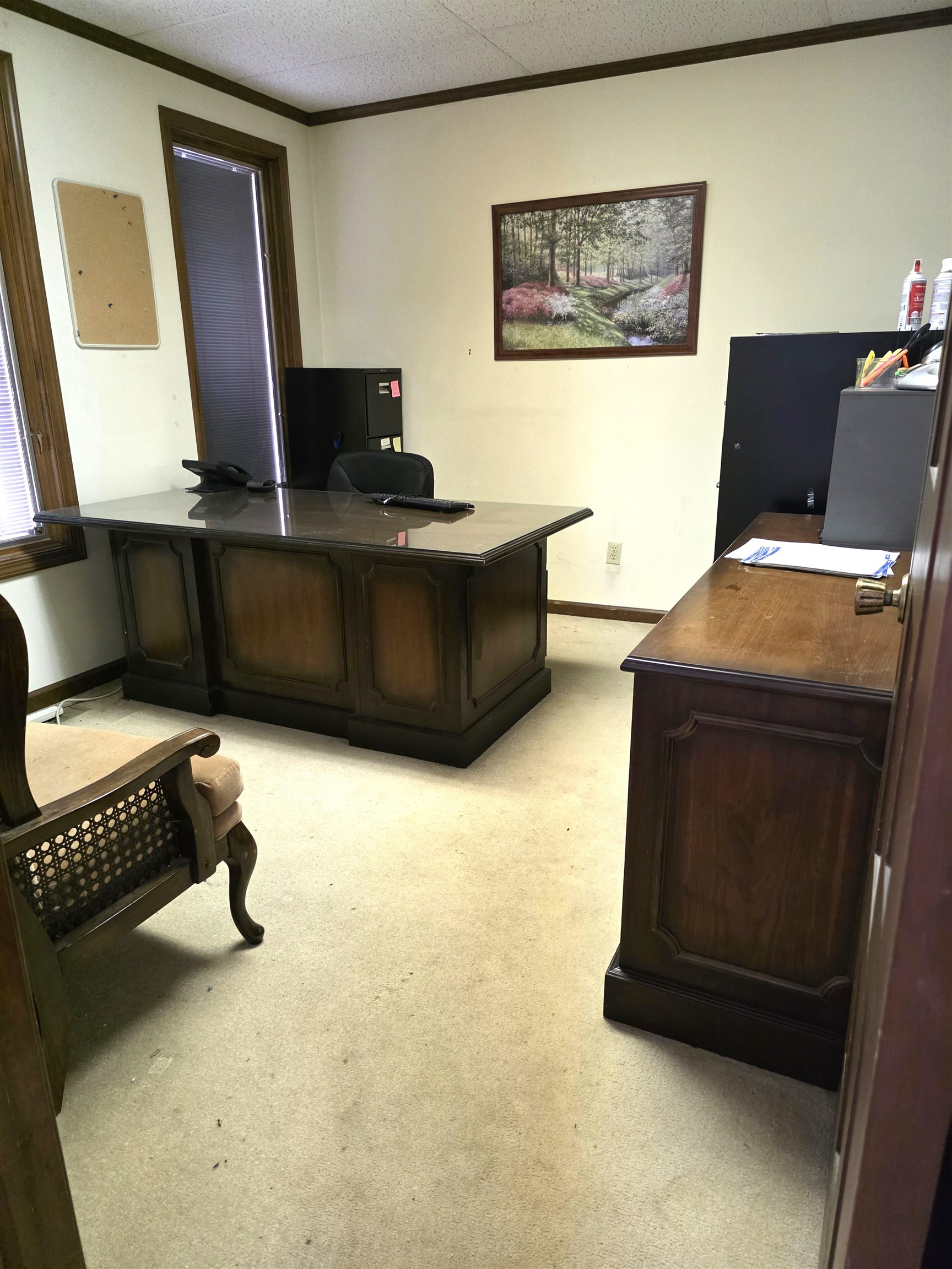 All brick 2500 S.F office with a newer roof (5yr.), New furnace and wtr heater with a little TLC make make a great space for a new or growing business. Great central location near the freeway and downtown. Property has a HOA with a $600.00 bi-annual membership fee. Property needs some interior TLC, Furniture is negotiable.